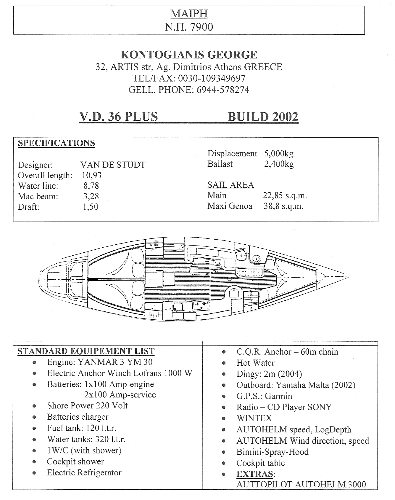 του σκάφους μας και χαιρόμαστε τον επιπλέον εξοπλισμό του στα θαλάσσια ταξίδια μας.
